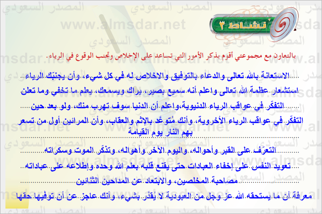 أقوم بذكر الأمور التي تساعد على الإخلاص وتجنب الوقوع في الرياء