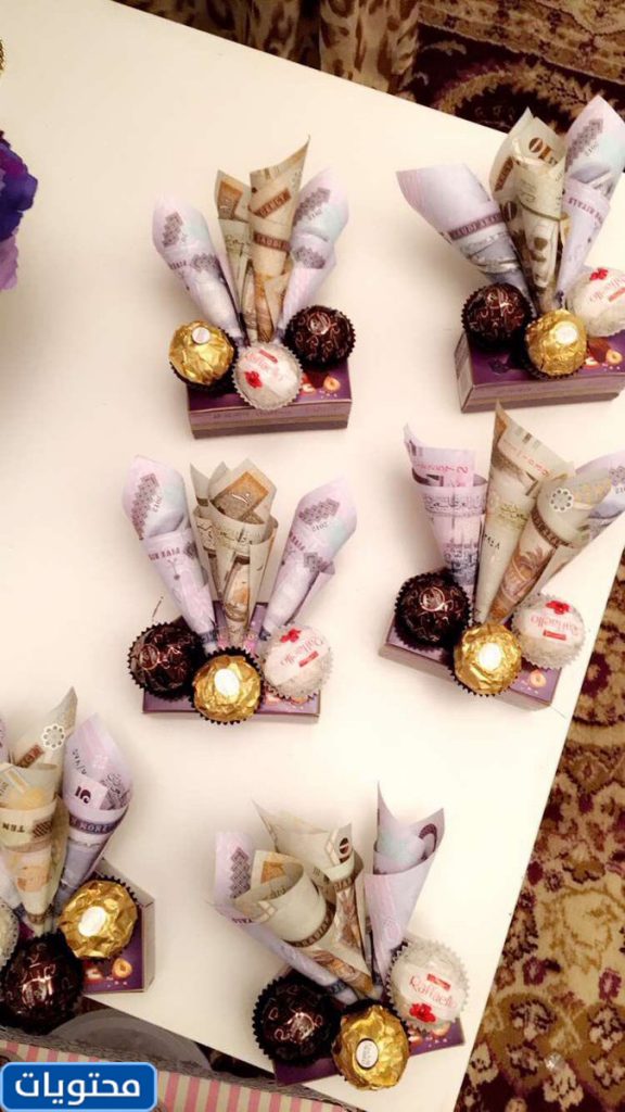 - لف العيدية على شكل اسطوانة، ثم لفها بإحكام بشرائط زاهية الألوان.