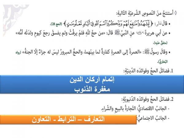 – الناحية الاقتصادي: التجارة بالبيع والشراء. – الناحية الاجتماعي: التعارف – الترابط – الاشتراك