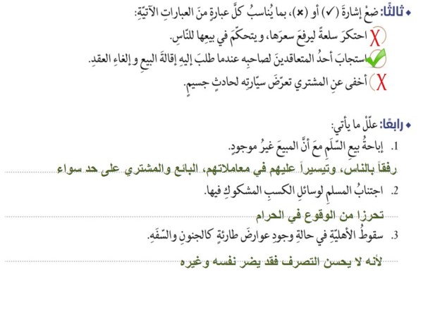 حلول الكتب التربوية الإسلامية ، حل لطلاب الصف الحادي عشر لدراسة العقود المالية في الإسلام ، الفصل الدراسي الأول ، العام الدراسي 2018-2019.