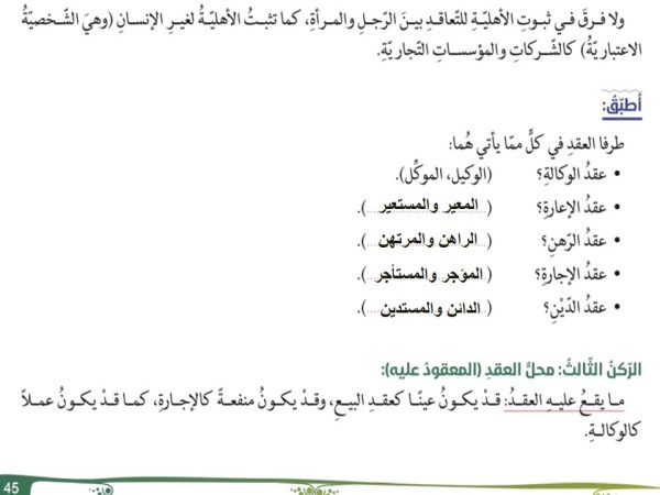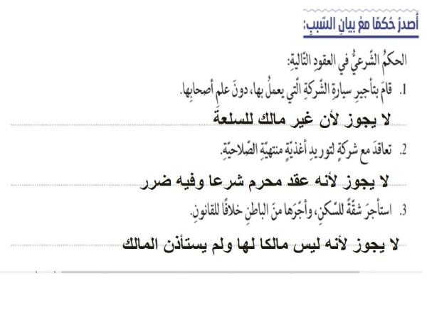 حلول الكتب التربوية الإسلامية ، حل لطلاب الصف الحادي عشر لدراسة العقود المالية في الإسلام ، الفصل الدراسي الأول ، العام الدراسي 2018-2019.