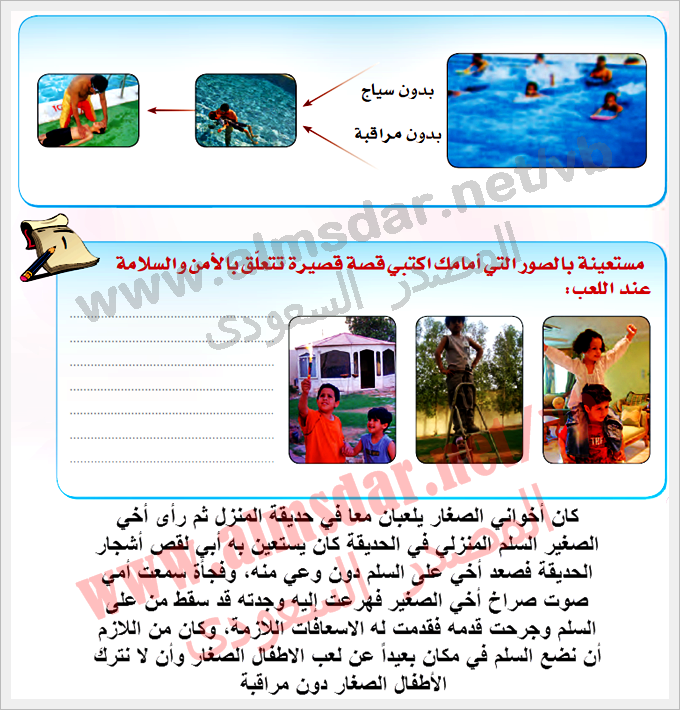 مستعينة بالصورة التي أمامك اكتبي قصة قصيرة تتعلق بالأمن والسلامة عند اللعب