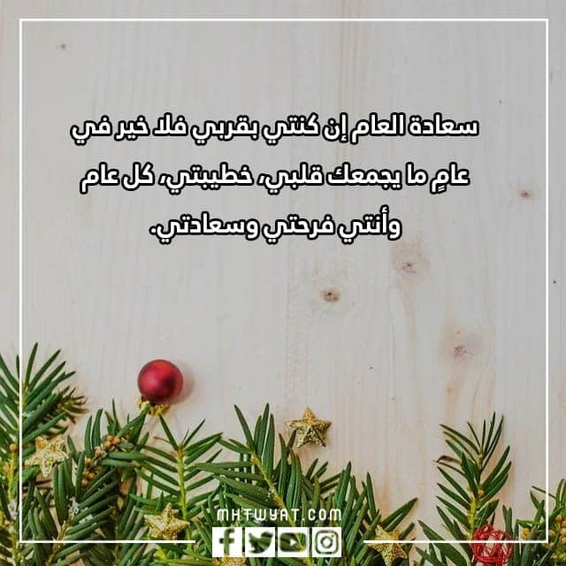 - عام جديد على أعتابنا، ينسيكم آلام الماضي ويبشركم بأيام جميلة مليئة بالحب والرحمة. خطيبتي العزيزة، كل عام وأنت بخير.