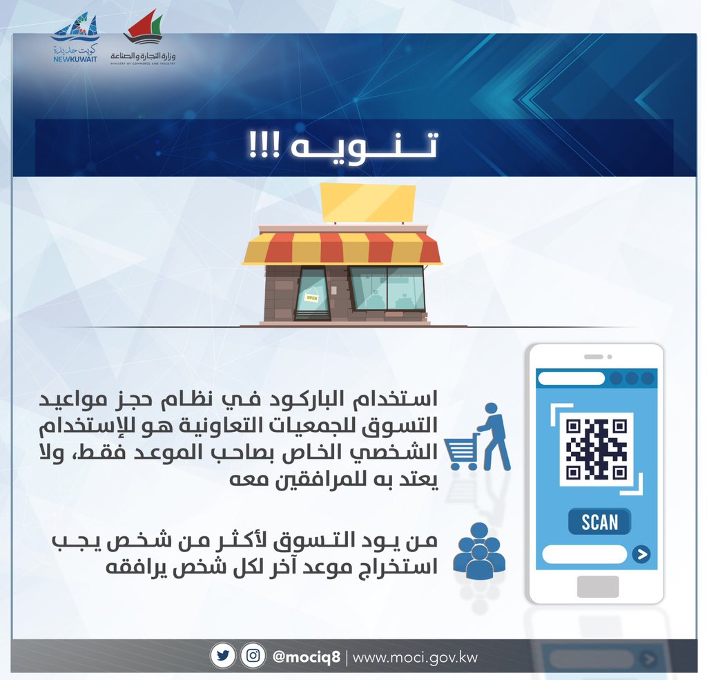 يمكنك الوصول لـ الرابط الإلكتروني لحجز موعد للمجتمعات التعاونية في دولة الكويت ، سينقلك الرابط لـ الصفحة المعدة لتحديد المواقت للسماح بالخروج والتسوق خلال فترة حظر التجول المعلنة في الدولة.