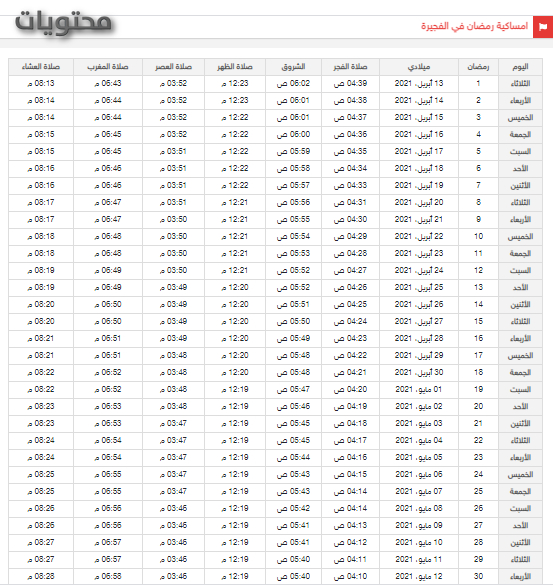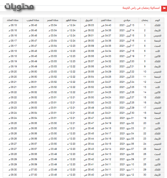 ونرى أن كل بلد في زماننا الحاضر مهيأ تمامًا لشهر رمضان ، ومن بين هذه الاستعدادات نرى ذلك بحضور توقيت طقوس شهر رمضان خاصة ساعات الصيام ليلًا. الاستراحة قبل الفجر ووقت الإفطار وصلاة المغرب ، خاصة وأن المواقت الخمسة الإلزامية ، الظهر أو الظهر أو المساء أو العشاء ، تختلف من بلد لـ انتهاء ، ولكن أيضًا من مدينة لـ أخرى ، تقوم الهيئة الفلكية داخل الدولة دائمًا بهذا من أجل كل أيام الشهر الكريم ، ويهتم بإقامة دائرة للساعات بالتفصيل ، وقد تم تحديد التفويض الرمضاني لشهر رمضان 1442 لدولة الإمارات العربية المتحدة على النحو التالي: