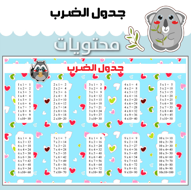 تنزيل جدول الضرب باللغة العربية واضح وكامل وجاهز للطباعة