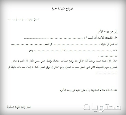 نموذج شهادة خبرة فارغ