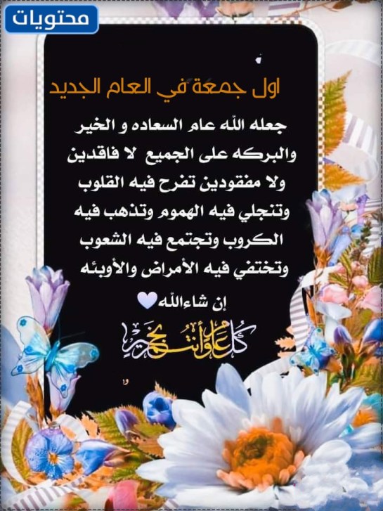 - للتعبير: في أول جمعة من العام الهجري الجديد، يتجدد الأمل في القلوب، وتتجدد سمات المحبة والدفء ومشاعر الإيمان. اللهم إنا نسألك أن تبارك لنا في هذه المناسبة وأن تزيدنا من الخير والعفو والعافية.
