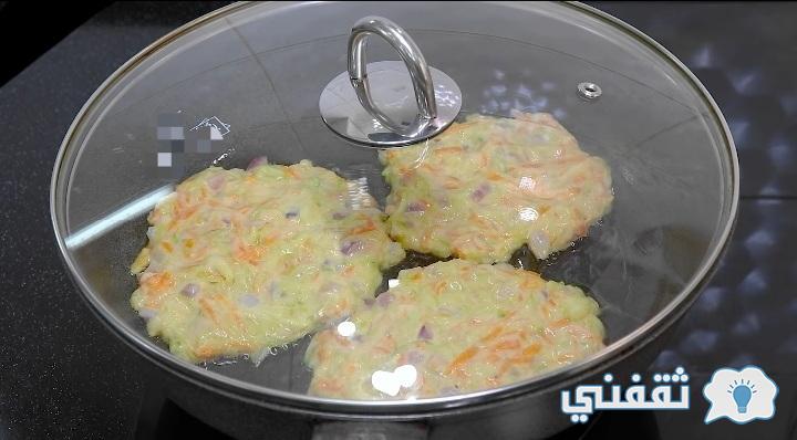 - ثم غطي المقلاة حتى يصبح قاع كل فطيرة بنياً ذهبياً.