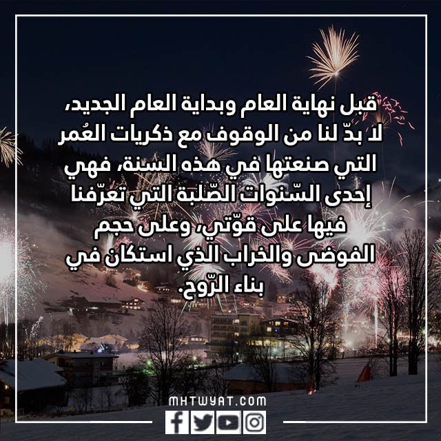 عبرنا عبر موسوعة تويتر من قلوب كثيرة جدا احدث المشاعر وأحلى الكلمات بمناسبة انتهاء عام واستقبال عام جديد بكل ما فيه من بهجه وبهجه، ونقدم في هذا الشأن ما يلي: