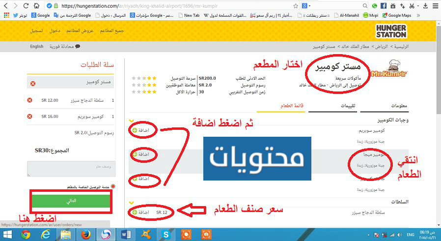 لتلقي طلبات الطعام ، يجب اتباع طريقة الطلب المعتمدة من موقع هنقرستيشن باتباع التعليمات التالية: