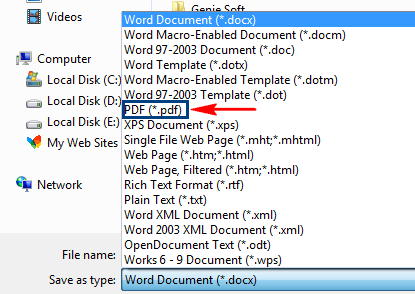 - هنا ، ستظهر بعض الخيارات بجانب المربع حفظ بنوع حيث يتم تحديد ملف PDF.