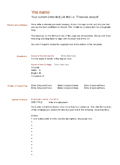 نصائح مهمة من الكثير من أصحاب العمل ؛ كل وظيفة حديثة يرغب الموظف التقدم إليها ؛ يتطلب إعداد نموذج سيرة ذاتية جديد. لأنه بشكل طبيعي تتطلب كل وظيفة مهاراتها واهتماماتها ومؤهلاتها ، وهذا ؛ لا معنى للإشارة لـ المهارة الأساسية للمحاسب للعمل في أحد البنوك أو أن تصبح مهارة التدريس بالكلية ، ومن افضل قالب سيرة ذاتية جاهز باللغة الإنجليزية يمكن استخدامه مباشرة وتعبئته وطباعته ، سواء كان من الخريجين ذوي الخبرة أو حديثي التخرج ، فيما يلي: